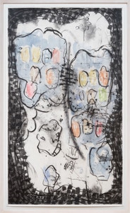 P1107, 2011, Pastellkreide, Ölfarbe, Schultafellack auf Bütten, 196 x 115,5 cm
